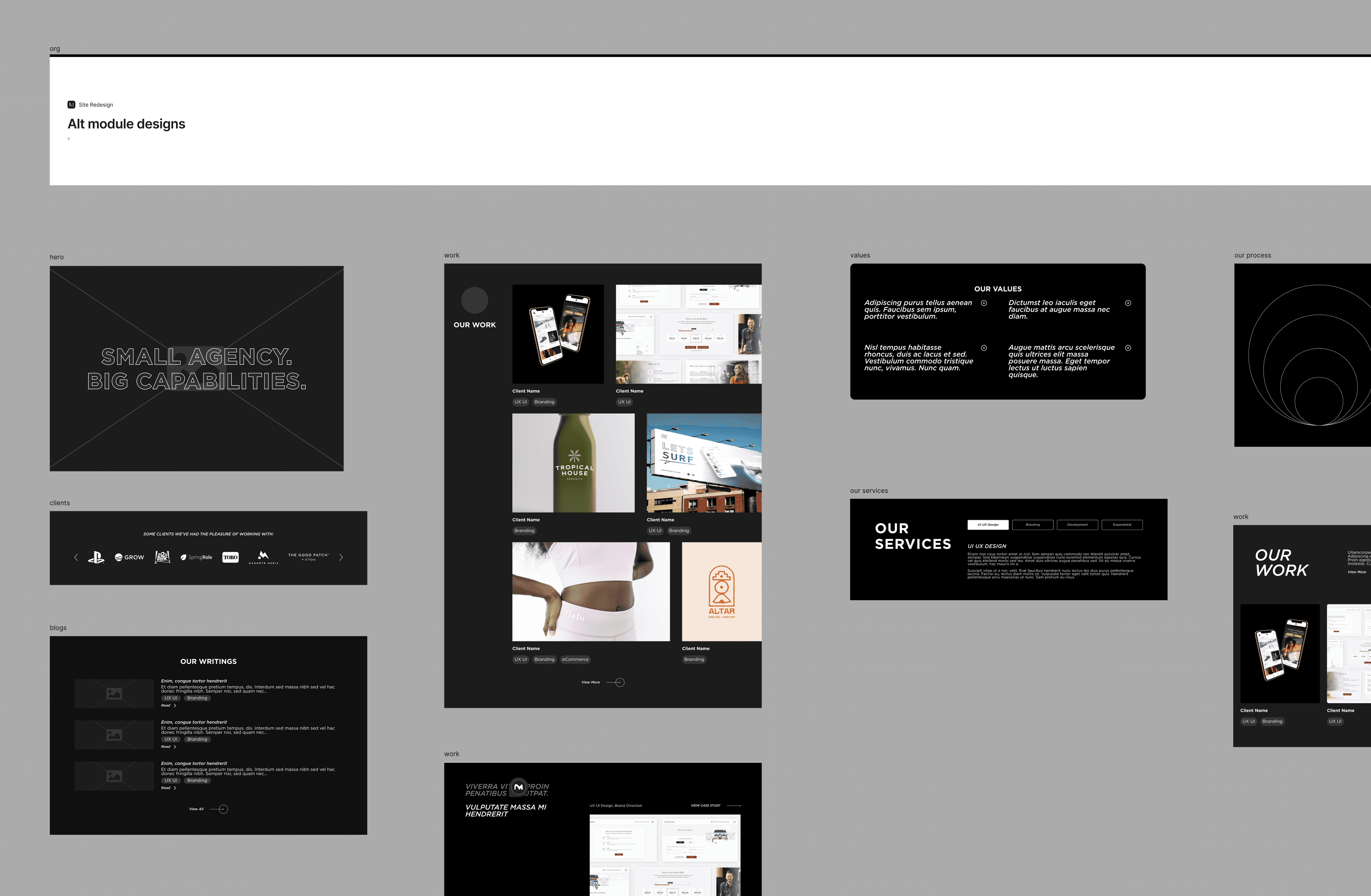 The direction for the update of the site began with some basic wireframes and lo-fi layouts which we then rolled into some mid to hi-fi designs. Once we had a strong framework for the experience of the site, I began incorporating this hand drawn, illustrative style to help bring some life and emotion to the overall look and feel.
